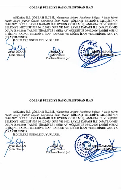 İmar planlarımız Gölbaşı belediyesinde 08.01.2026 tarihinde askıya çıktı.